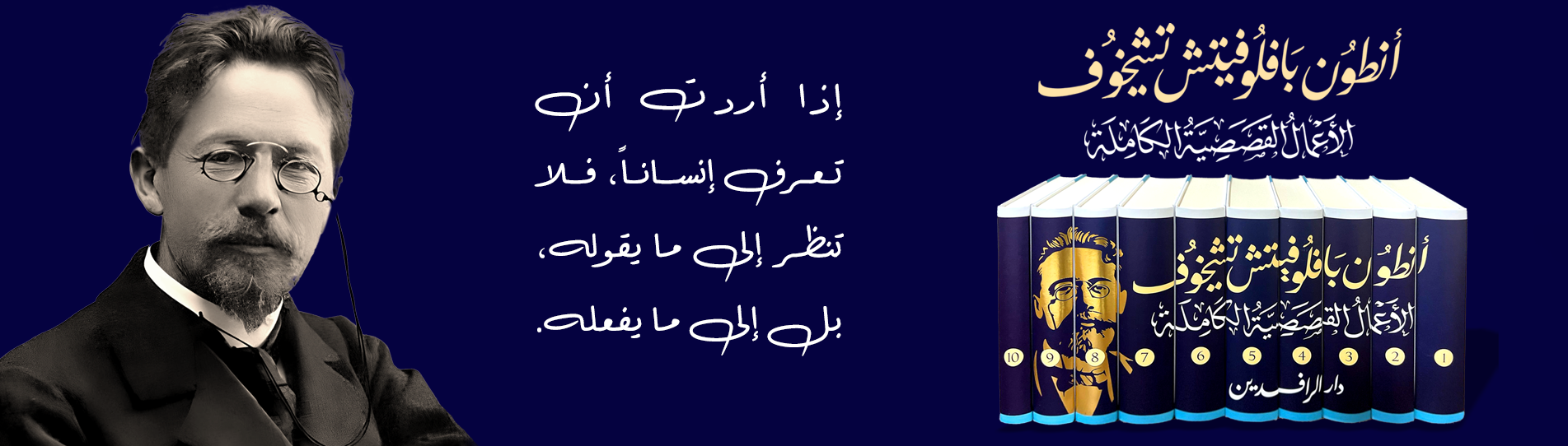 يُعرف تشيخوف بأنه أعظم كاتب قصص قصيرة عرفه العالم، وأبرز المؤثرين على أجيالٍ متعاقبة من كتّاب القصّة في التاريخ الأدبيّ العالميّ. ترك تشيخوف تراثاً لا يُضاهى من النتاج السرديّ المتفرد بلغة مقتصدة، تتجنّب الوعظ وترفض الأحكام المسبقة، حيث لا أبطال خارقون ولا شر مطلق، بل بشر عاديون يعبرون الحياة بتناقضاتها وتفاصيلها. في قصصه، لا نجد حبكة تقليديّة أو تصاعداً دراميّاً، بل لحظة إنسانية متفجّرة بهدوئها، تضيء وجوه الناس في الظل، حتى غدا برهاناً على حرفية الفن حين يتجلّى في واحد من أرفع تمثّلاته. تقدّم الرافدين ولأوّل مرّة باللغة العربية، الأعمال القصصية الكاملة لتشيخوف، كنزاً أدبيّاً غير مسبوق، بجهود فريقٍ من أهم المترجمين العرب، وعن اللغة الروسيّة مباشرةً عبر مشروع استمر لخمس سنوات. يمثّل الجزء الأول بدايات وعي تشيخوف الأدبي والنضج المبكر وسط ظروف قاسية، تنتقلُ عائلته عام 1877 إلى موسكو هرباً من الإفلاس بعد إغلاق متجر والده في تاغانروغ التي بقي فيها لإكمال دراسته الثانويّة. يظهر حسّه بالملاحظة وسخريته من المجتمع وتتشكّل بوادر أسلوبه. 1880، يلتحق بكلية الطب بموسكو ويُصبح معيلاً لعائلته. يبدأ بكتابة مقالات وقصص قصيرة بغرض الربح لا الفن في مجلّات هزلية بأسماء مستعارة. تعتمد كتاباته -وقتها- المفارقة لكنها تمهّد لما تلاها من قفزات. إنها مرحلة العبور من الفتى المعوز إلى الشاب الذي سيغيّر القصة القصيرة إلى الأبد.